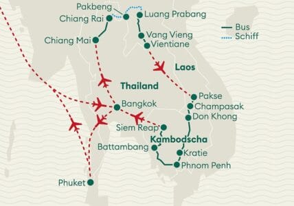 Die beste Zeit, um Laos und Kambodscha zu besuchen, sind die Reisemonate November bis März. Dann herrscht Trockenzeit und die Temperaturen sind nicht allzu hoch.
