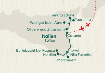 Nach dem Frühstück Fahrt Richtung Ramacca und Besuch eines landwirtschaftlichen Betriebs, der auf der fruchtbaren Ebene von Catania liegt. Diese Azienda Agricola ist ein idealer Ort für den Anbau hervorragender sizilianischer Agrarprodukte – von Getreide über Zitrusfrüchte bis hin zur Herstellung des wertvollen Olio extravergine, das aus der Sorte Nocellara gewonnen wird. Neben der Landwirtschaft betreibt die Azienda auch die Zucht einiger Tierarten, darunter der Ragusa-Esel, dessen Milch im Betrieb abgefüllt und vertrieben wird. Sie zeichnet sich durch ihre positiven Eigenschaften aus. Der Ragusa-Esel ist eine einheimische Tierart, die auf Sizilien immer seltener vorkommt und vom Aussterben bedroht ist. Alle Aktivitäten des Unternehmens basieren auf Kenntnissen, die über mehrere Generationen weitergegeben wurden. Die Rhythmen des Betriebs folgen der Natur, um hohe Qualitätsstandards, die Bio-Zertifizierung der Produkte und das Wohlergehen der auf dem Hof lebenden Tiere sicherzustellen.